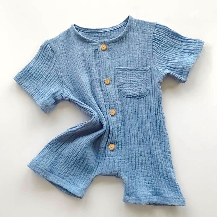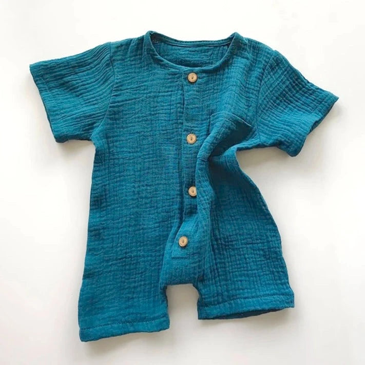 Crafted from soft, breathable and comfortable 100% cotton, our Button Up Muslin Romper is the perfect addition to your little one's wardrobe. Keep them cool and cozy all day long with this high-quality, stylish and practical piece.