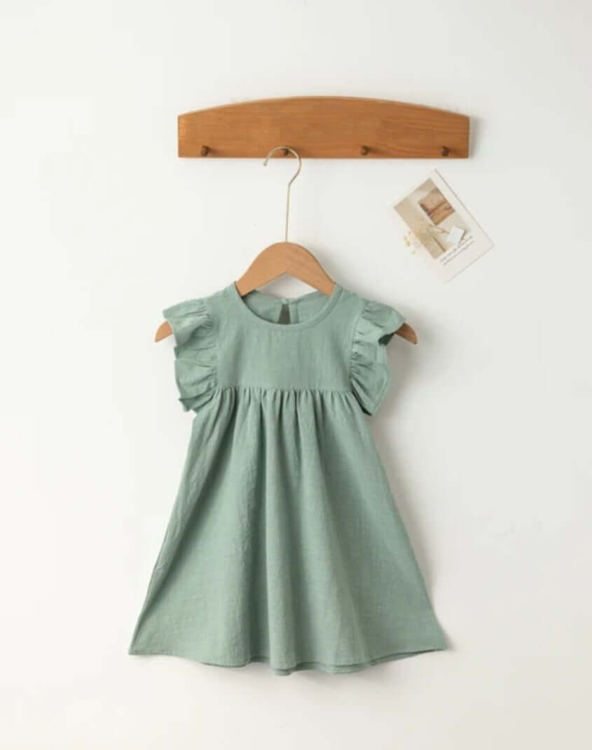 The Clover Flutter Sleeve Dress offers the perfect blend of comfort and style for your toddler. With its delicate flutter sleeves, tie back, and charming sage green color, this dress is sure to become a favorite in her wardrobe. Perfect for any occasion, this dress will keep your little one looking adorable and feeling comfortable.