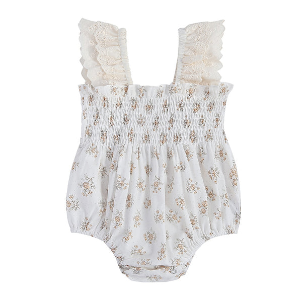 This matching set of sisters' apparel features vintage floral designs, delicate lace trim, and organic cotton materials. Comfortably stylish, this romper and dress set is perfect for babies and toddlers. Enhance your little one's wardrobe with this charming duo.