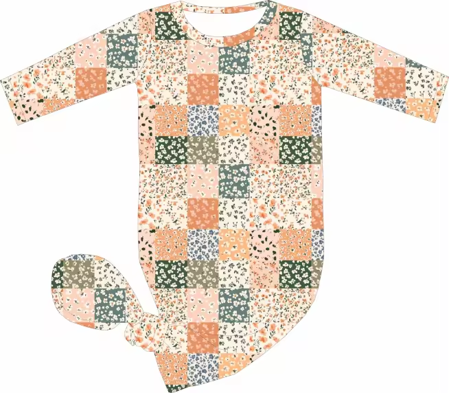 Experience the ultimate comfort for your newborn with our Harvest Patchwork Bamboo Knotted Gown. Made with 220 GSM bamboo fabric, this hypoallergenic gown is perfect for delicate skin. Give the gift of comfort and style with our newborn essential.