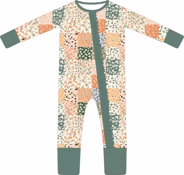 Introducing the Harvest Patchwork Bamboo Sleeper, featuring 220 GSM bamboo fabric that is hypoallergenic and super stretchy. Bamboo fabric allows for months longer wear than traditional sleepers. Sleep peacefully with the ultimate comfort and durability.