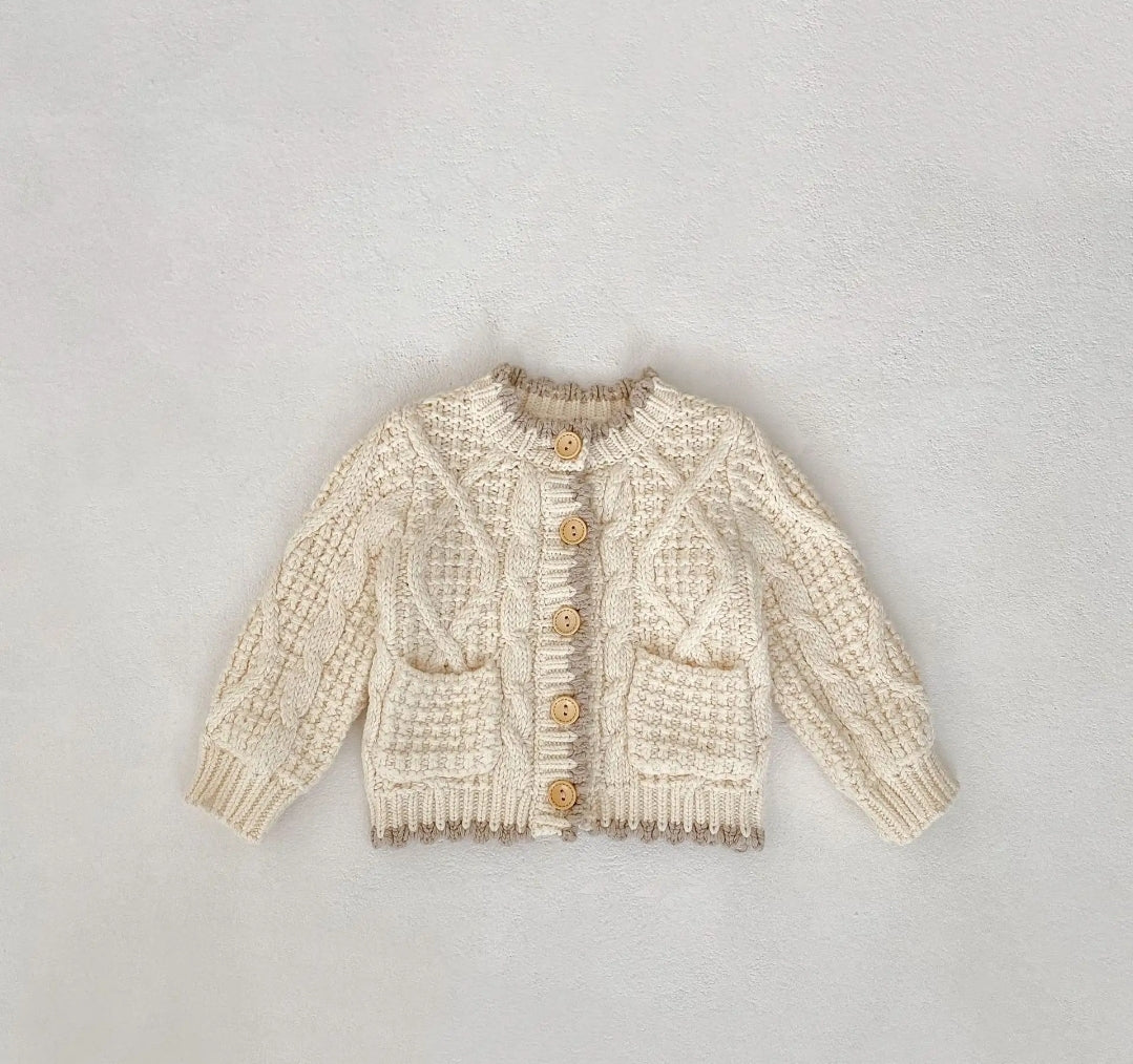 Expertly crafted from 100% cotton, this Jasper Chunky Knit Cardigan is soft, warm, and perfect for winter babies. Its cable knit design adds a touch of texture and style to any outfit. Stay cozy and stylish with this must-have wardrobe essential.