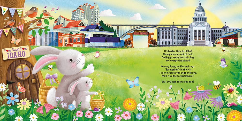 Search for Easter eggs with Little Bunny and hippity-hop around your hometown with this springtime read-aloud children's picture book!