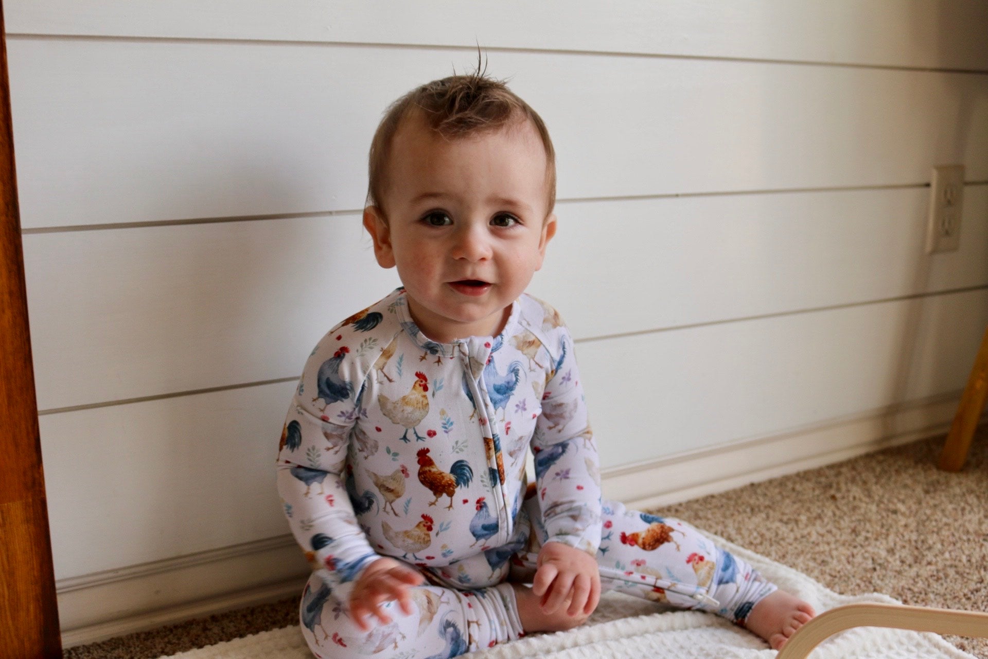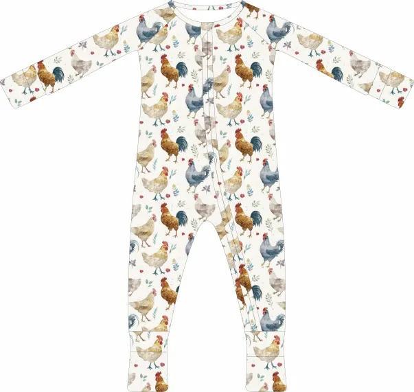 Introducing the Watercolor Chickens Bamboo Sleeper, featuring 220 GSM bamboo fabric that is hypoallergenic and super stretchy. Bamboo fabric allows for months longer wear than traditional sleepers. Sleep peacefully with the ultimate comfort and durability.