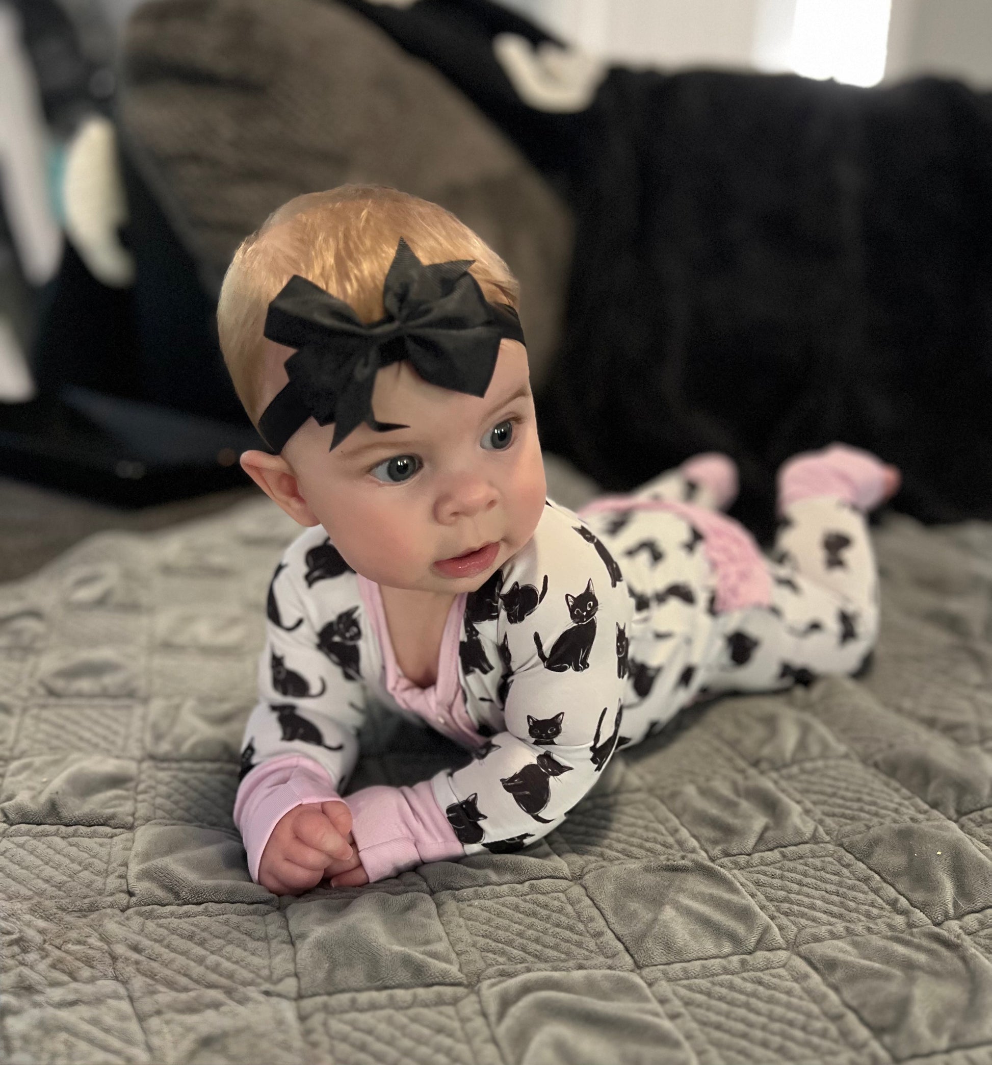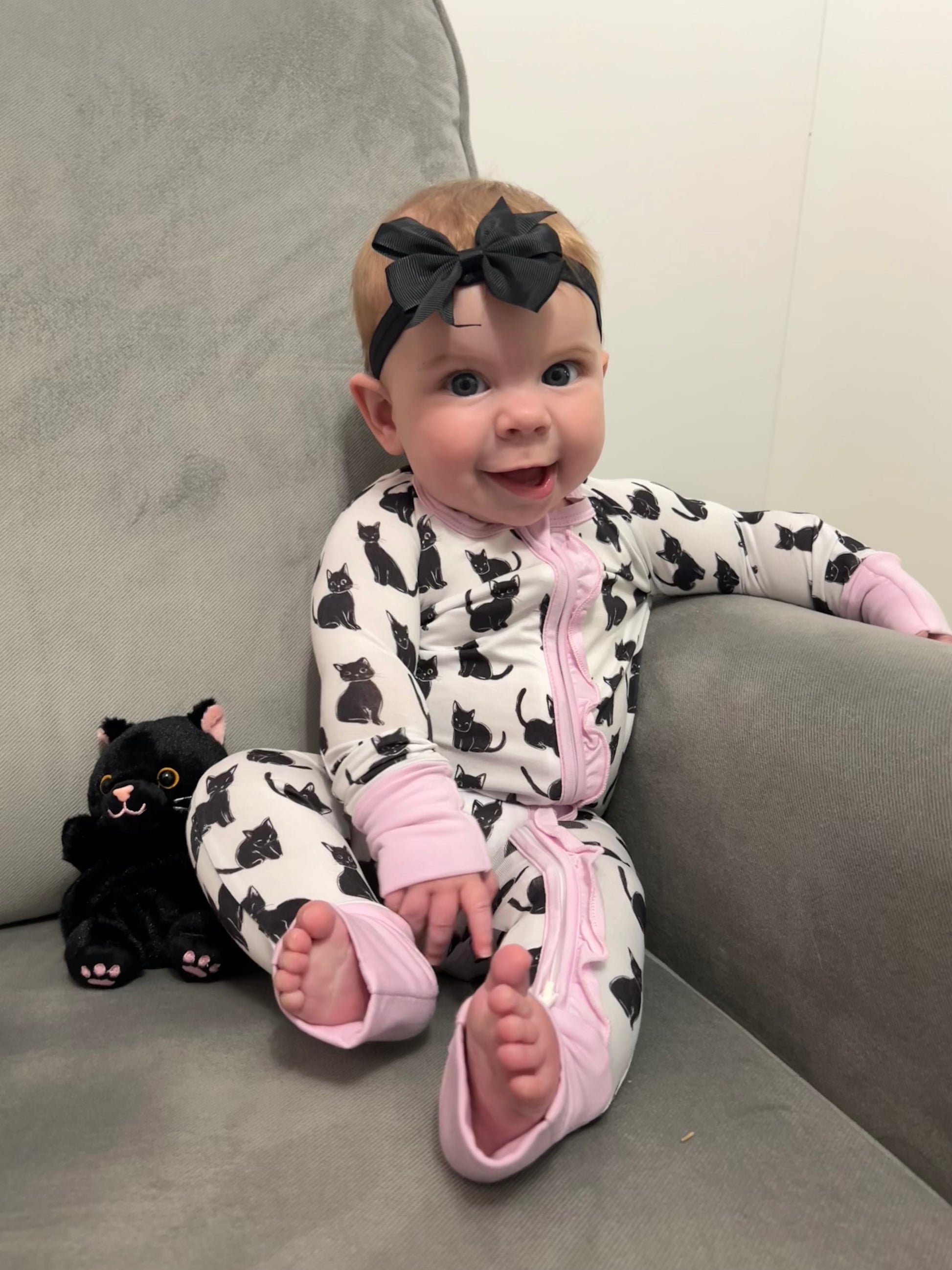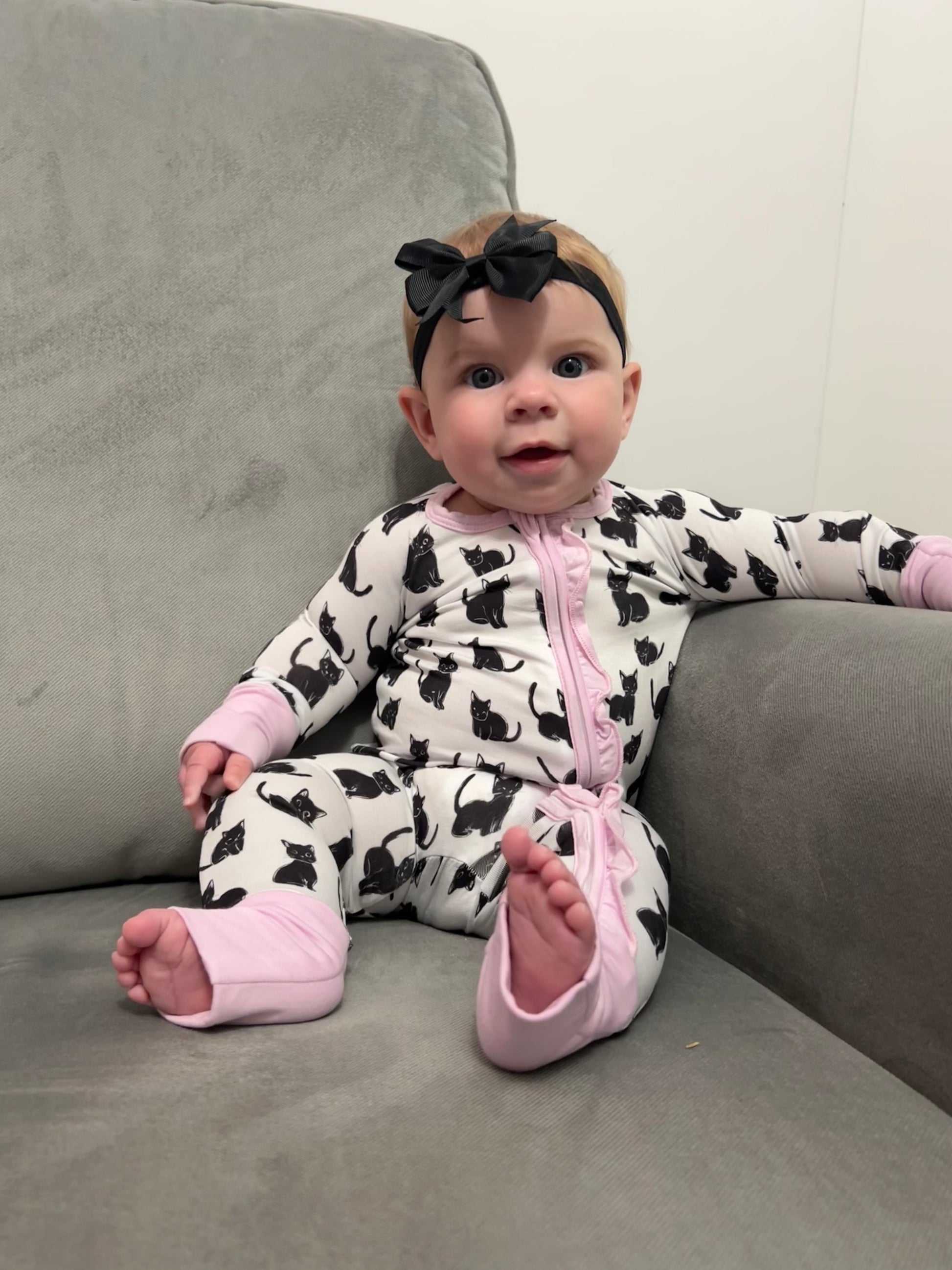 Introducing the Moonlit Whiskers Bamboo Sleeper, featuring 220 GSM bamboo fabric that is hypoallergenic and super stretchy. Bamboo fabric allows for months longer wear than traditional sleepers. Sleep peacefully with the ultimate comfort and durability.